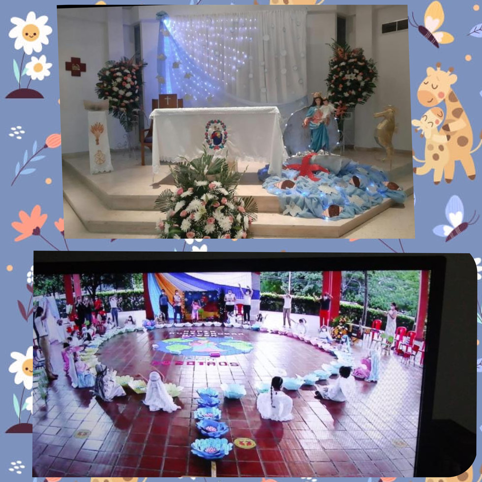 Los miembros de esta comunidad poco a poco nos envolvemos en esta gran festividad, desde que inicia el mes nuestro colegio se viste de fiesta, visualizamos en los pasillos gran colorido, pendones, imágenes, flores, listones y pompones todos con un solo objetivo, venerar a nuestra madre del cielo, los días pasan cada uno muestra su creatividad y amor a través de hermosos altares y frases para esta señora bonita. En medio de nuestra devoción todos los días dedicamos canciones, hacemos la novena y las florecillas diarias que nos permiten caminar de la mano de mamita María.